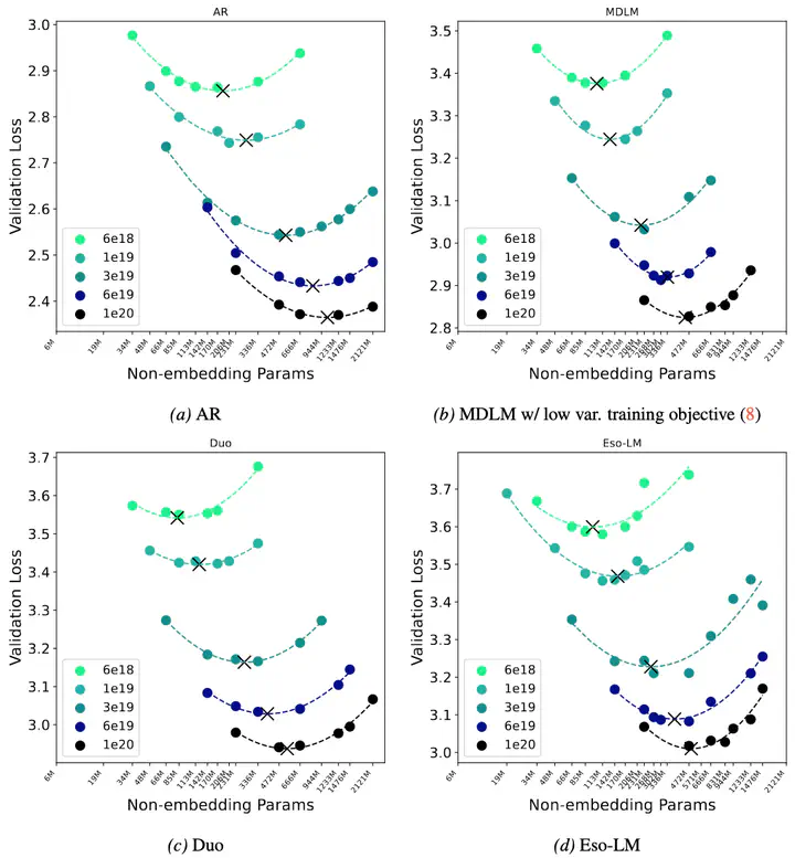 Diffusion language models are a promising alternative to autoregressive models due to their potential for faster generation. Among discrete diffusion approaches, Masked diffusion currently dominates, largely driven by strong perplexity on language modeling benchmarks. In this work, we present the first scaling law study of uniform-state and interpolating discrete diffusion methods. We also show that Masked diffusion models can be made approximately 12% more FLOPs-efficient when trained with a simple cross-entropy objective. We find that perplexity is informative within a diffusion family but can be misleading across families, where models with worse likelihood scaling may be preferable due to faster and more practical sampling, as reflected by the speed-quality Pareto frontier. These results challenge the view that Masked diffusion is categorically the future of diffusion language modeling and that perplexity alone suffices for cross-algorithm comparison. Scaling all methods to 1.7B parameters, we show that uniform-state diffusion remains competitive on likelihood-based benchmarks and outperforms autoregressive and Masked diffusion models on GSM8K, despite worse validation perplexity.